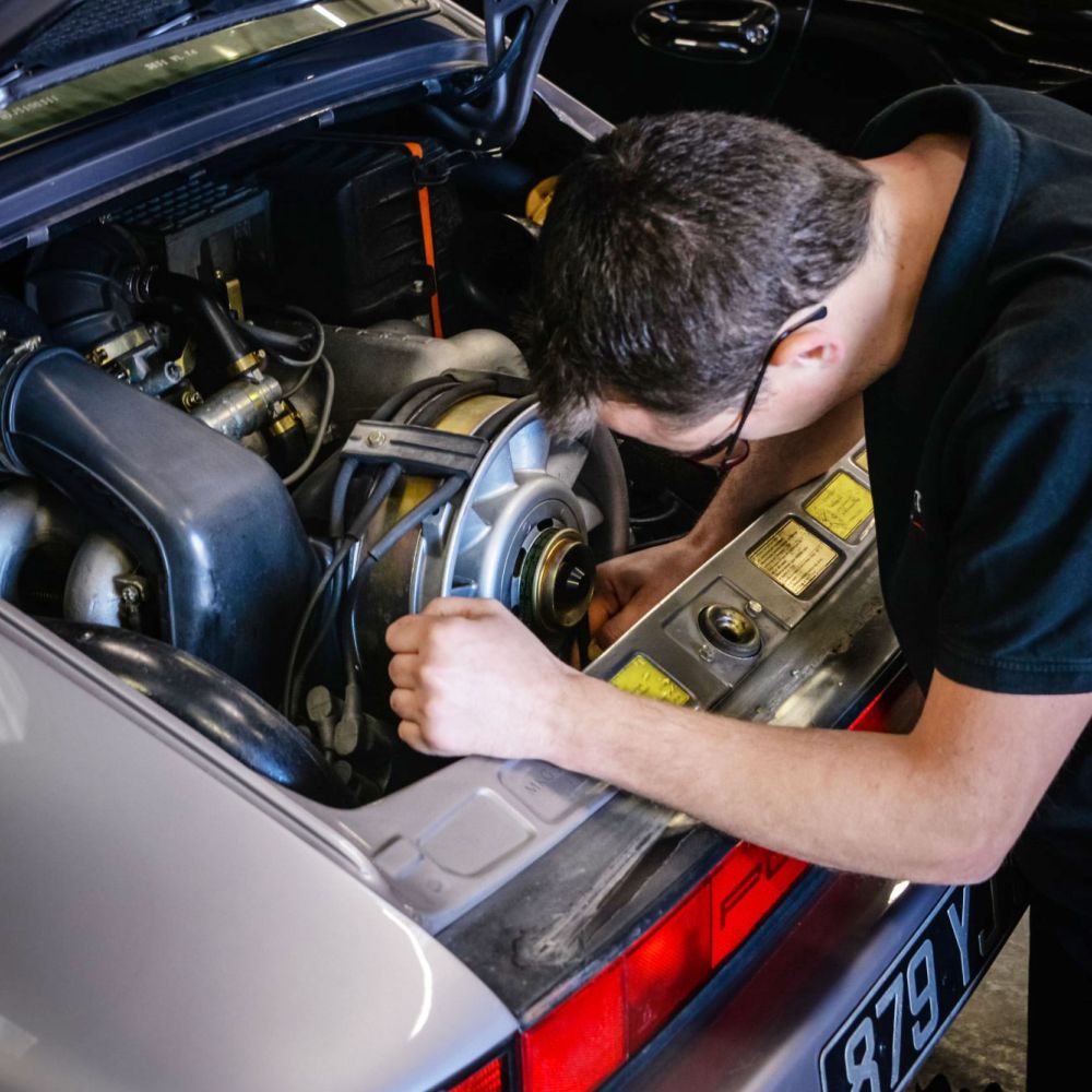 Comment bien entretenir sa Porsche ? En nous confiant votre véhicule bien sûr ! Dans notre atelier, nous mettons à votre disposition notre savoir-faire et notre expertise pour vous assurer un entretien serein de votre véhicule. Nous sommes en mesure de réaliser l’entretien des Porsche 356 jusqu’aux 911 type 992 . En passant par les modèles les plus extrêmes comme les GT3, GT3 RS, Turbo… Nous effectuons tous les travaux d'entretien courants : vidange moteur, boîte de vitesses manuelle, Tiptronic ou encore PDK etc…